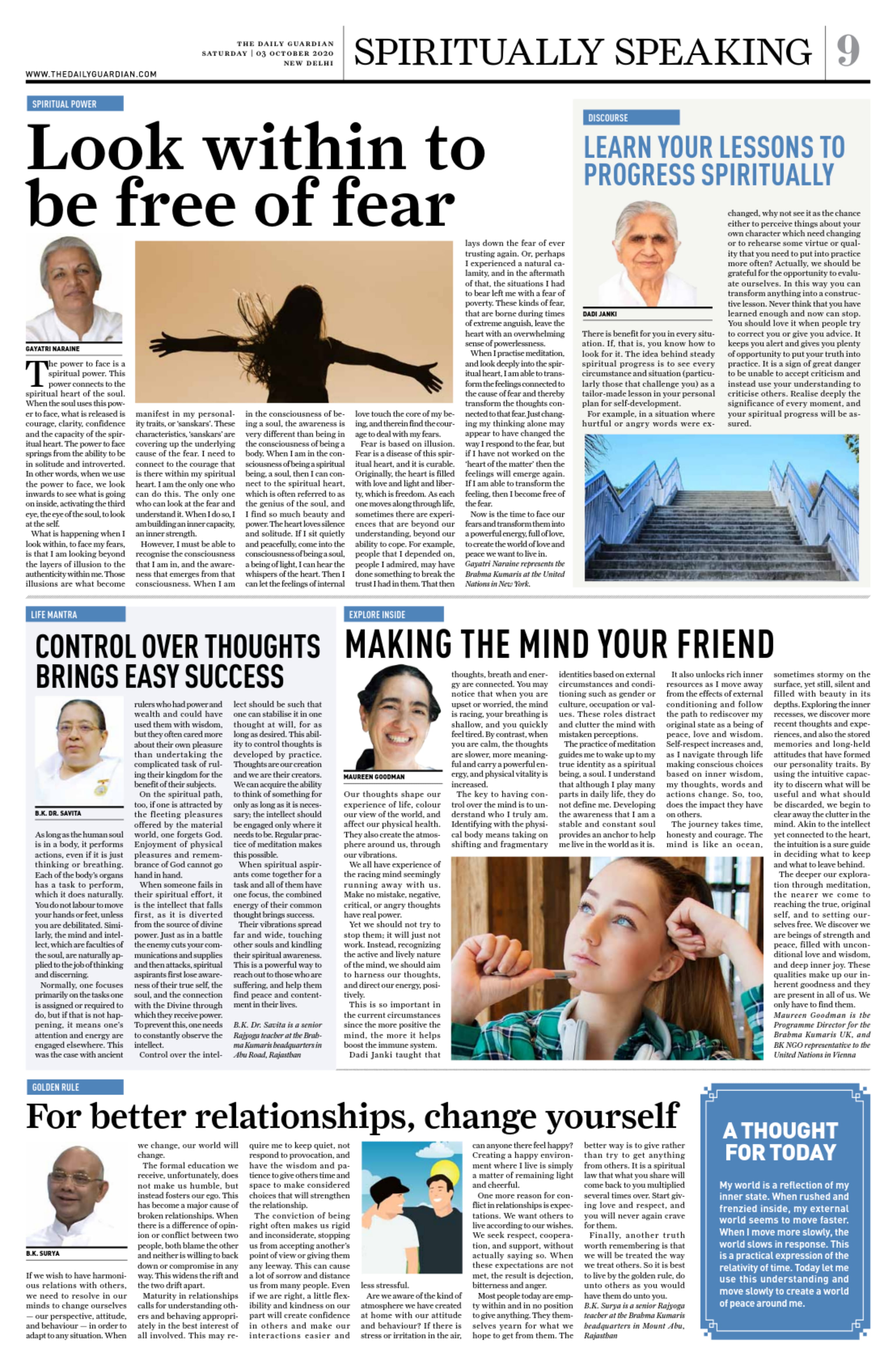 Brahma Kumaris Page in the Daily Guardian, 17th October edition