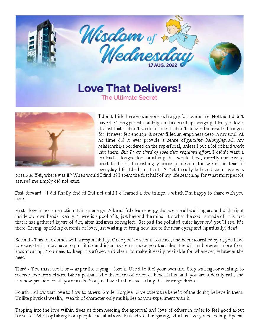 Here's the first issue of 'Wisdom of Wednesday' featuring a beautiful article from Sis. Sharona Stillerman (Egypt) which will help you tap into that goldmine of pure love which is hidden within!