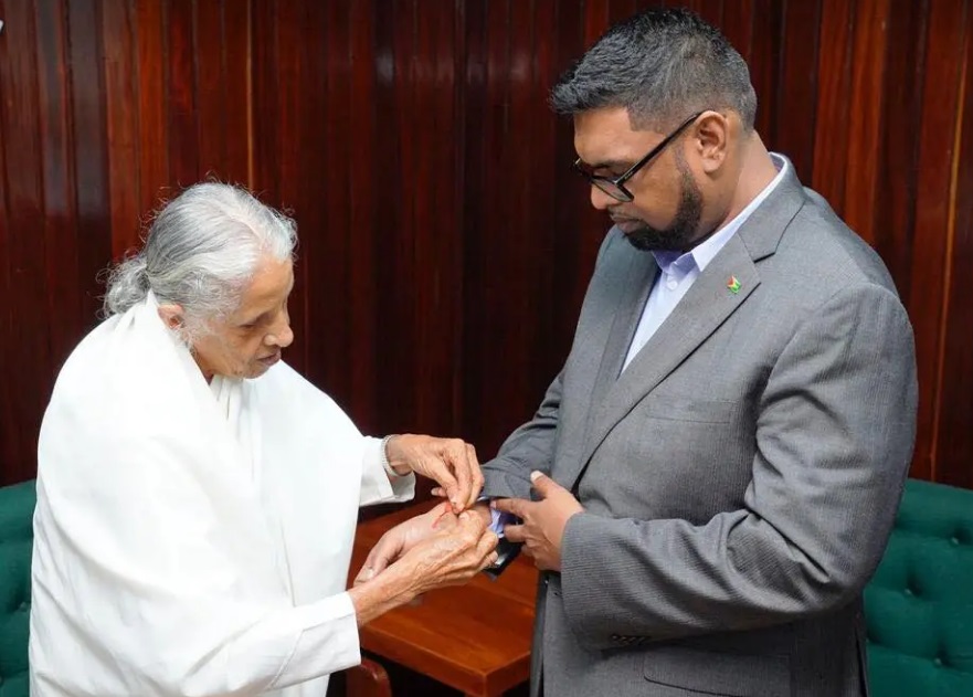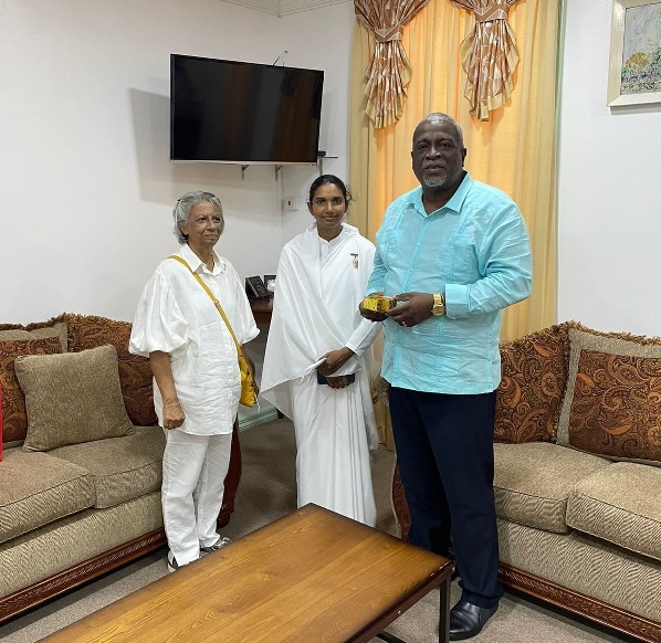 Sisters Kinnari and Sita also met with both President Mohamed Irfaan Ali and Vice President Bharrat Jagdeo in the president’s chamber. They shared the spiritual significance of Holi and offered Brahma Kumaris services to them and their staff.