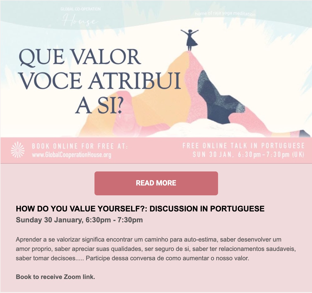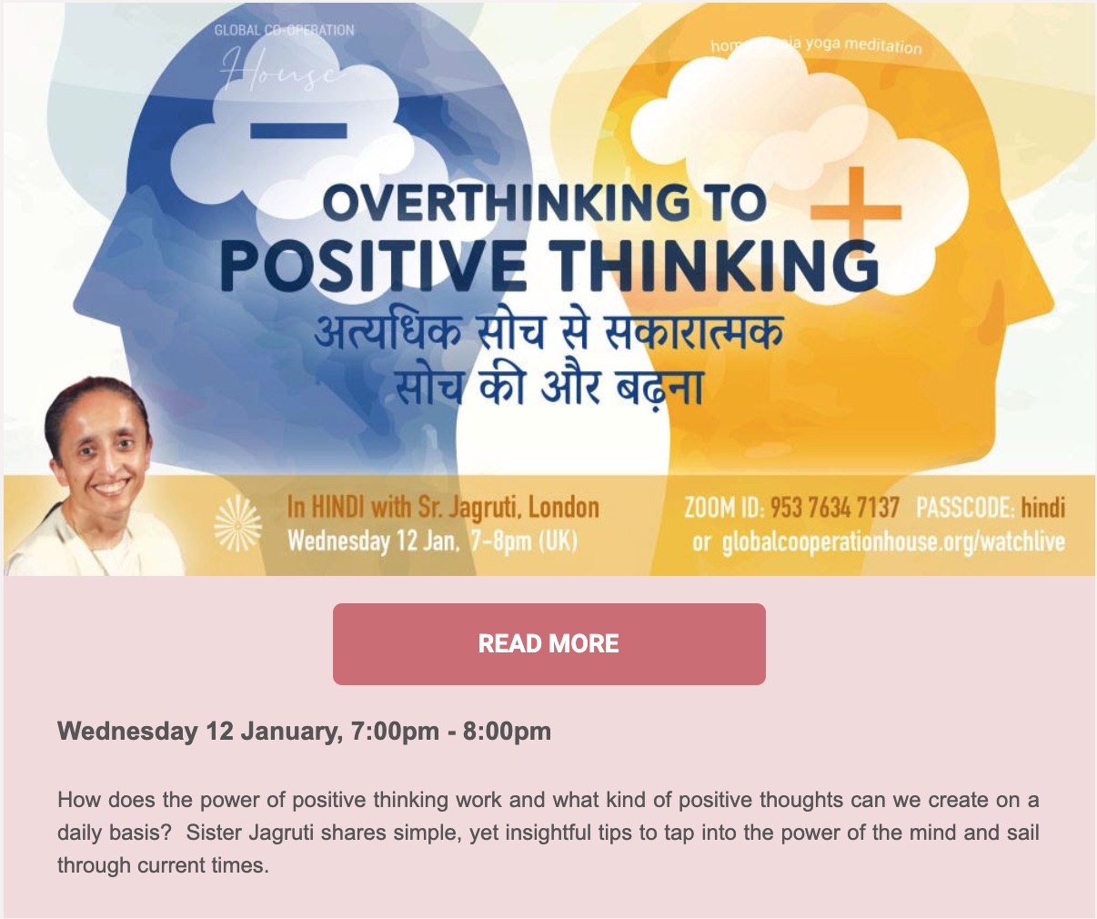Online Talk for I S Wembley for Tuesday - 25th January - Turn Setbacks into Comebacks With Sister Jayanti (6:45 pm BST)