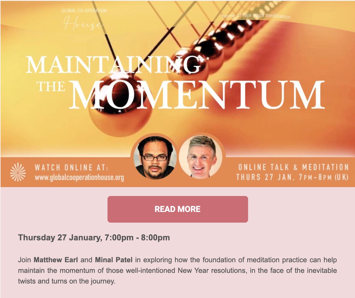Since it is still the Avyakt month January, we shall continue with one hour yoga bhatthi every evening till the month end, Sunday 30th.