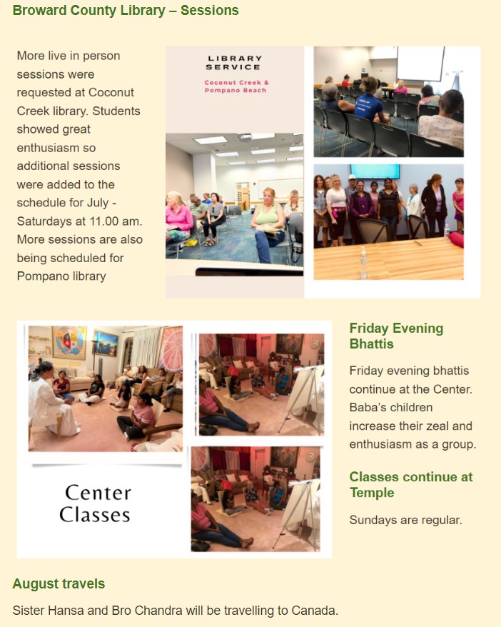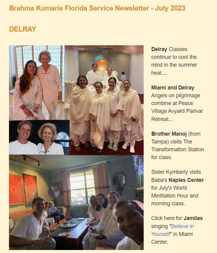 Brahma Kumaris Florida Service Newsletter - July 2023