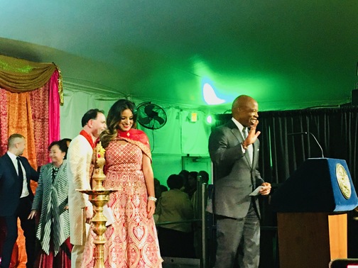 Yesterday New York City Mayor, Eric Adams hosted a Diwali event for the first time at the Gracie Mansion (official residence of the Mayor in NYC). More than 1000 people were at the event. Many new faces from various diasporic communities and several Indian-Americans who are in public office had gathered at the mayor's celebration.