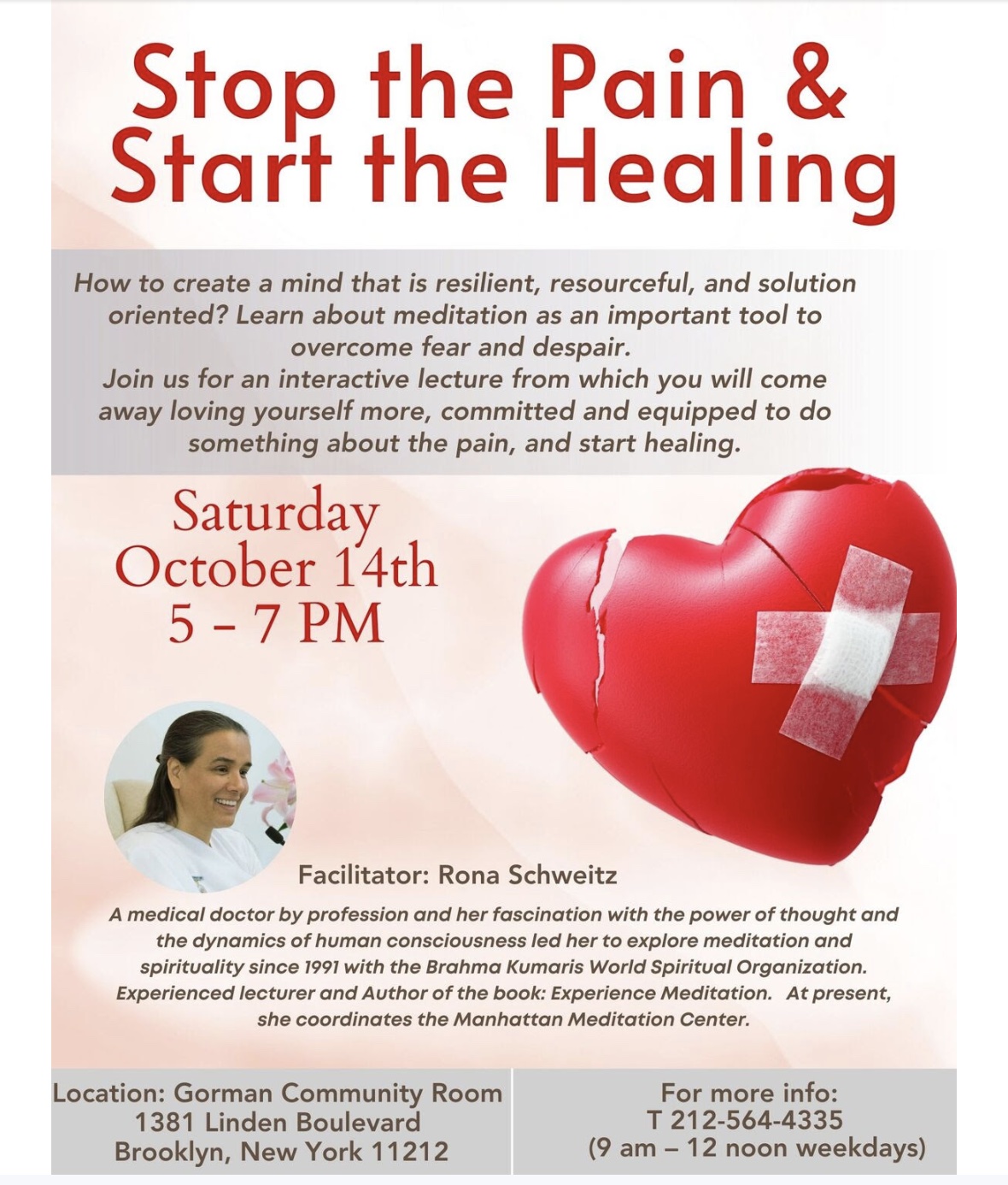 Special Saturday Workshop in Brooklyn (10/14): Stop the Pain and Start the Healing