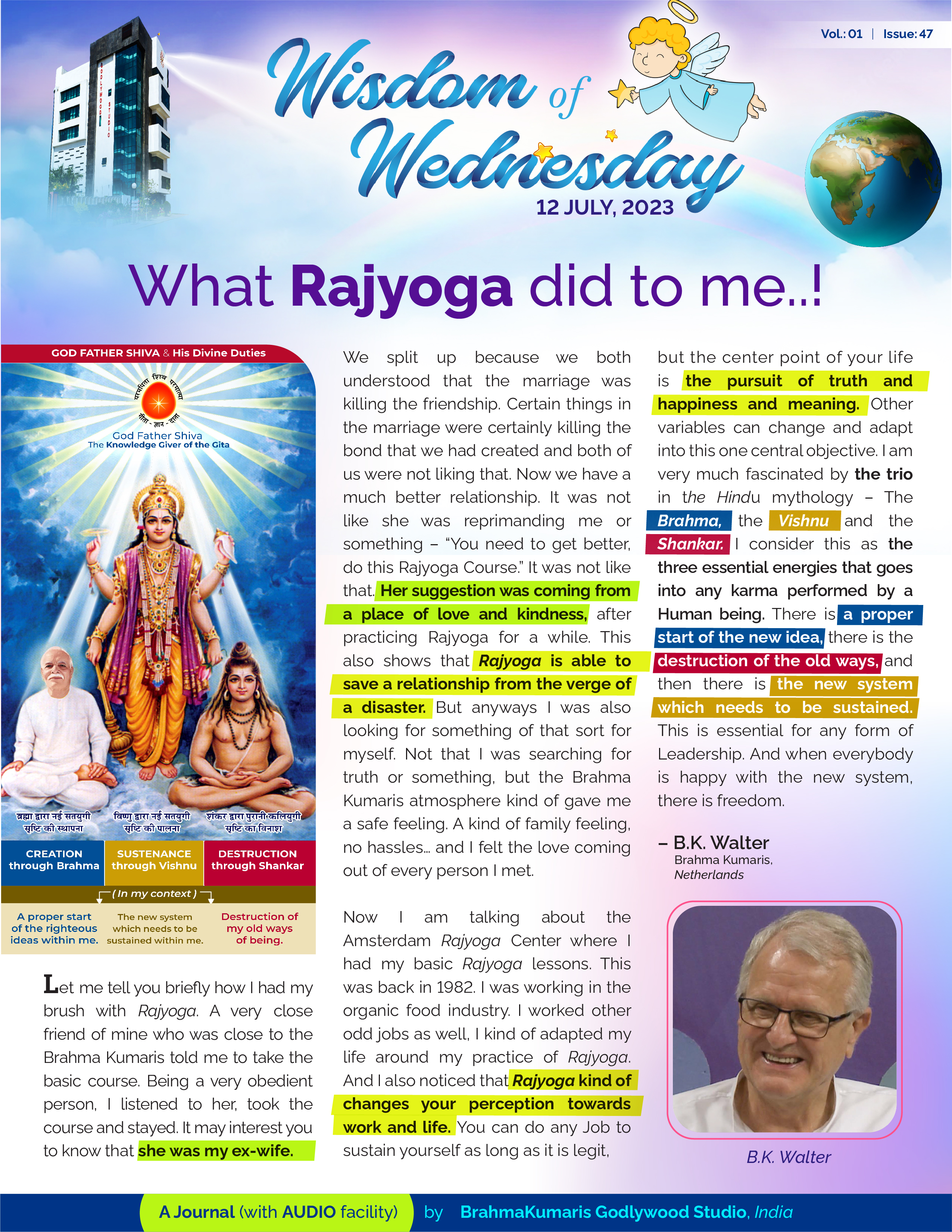 In this issue of Wisdom of Wednesday let us listen to Bro. Walter from Netherlands, a long time Yogi, who found the magic of Rajyoga Meditation in quite an unconventional way.